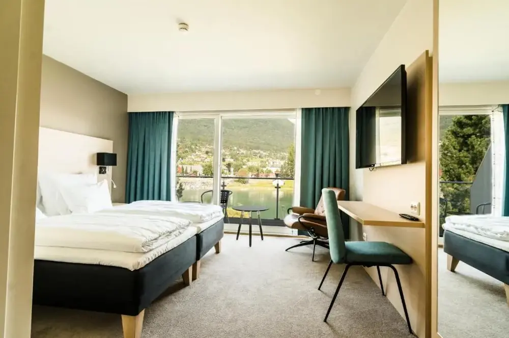 Nettes Personal, sauber und nett. Gutes Frühstück und ausgezeichnetes Buffet am Abend. Ein bisschen Erneuerung könnte wahrscheinlich alles an seinem Platz gebrauchen, da es sich größtenteils um das gleiche Essen handelt wie in den Jahren, in denen ich während der Strynemessa dort gelebt habe. Aber alles in allem gutes Essen.